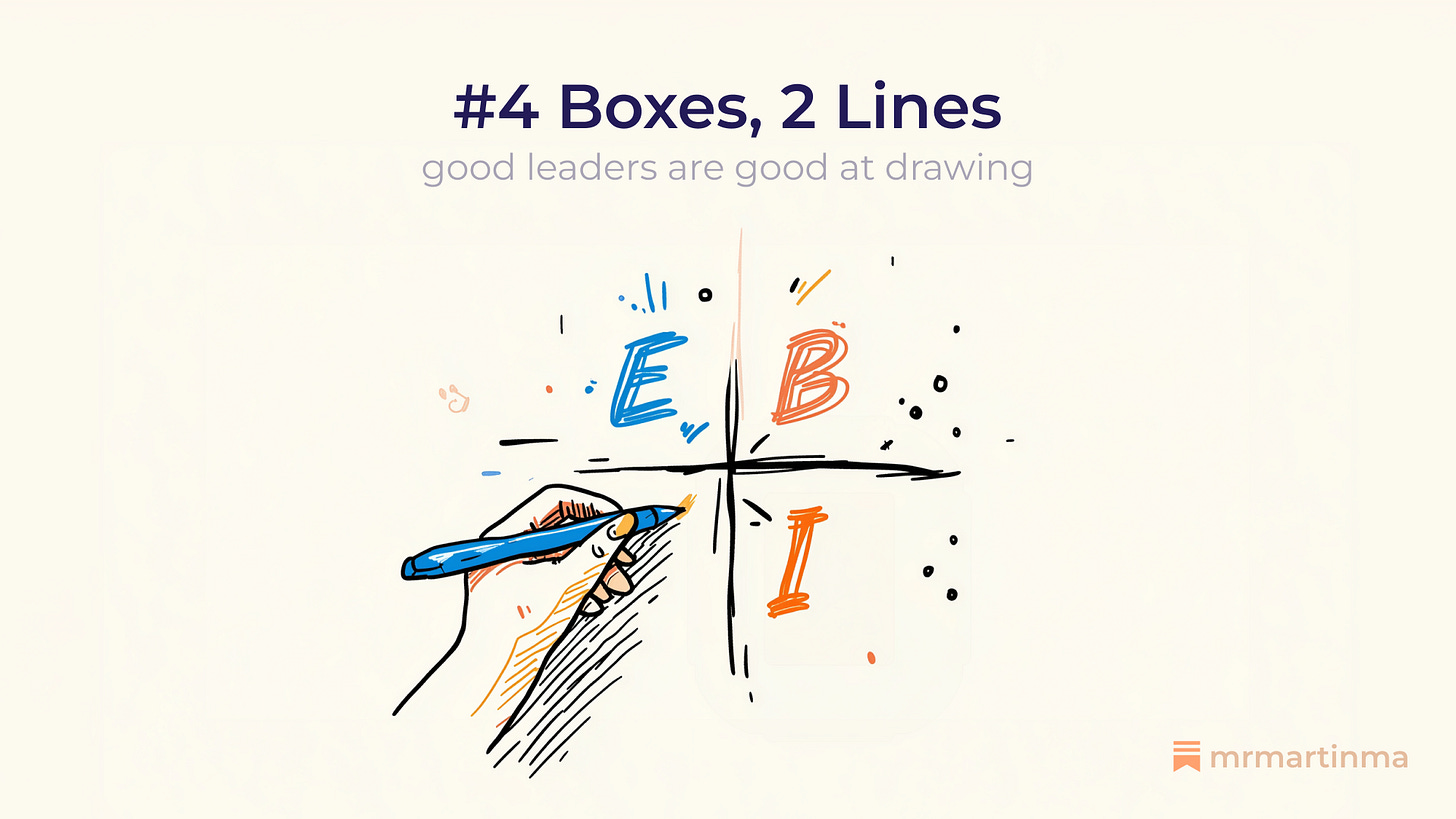 The best leaders I’ve worked with do this. They pick up a marker and draw the situation before they try to solve it. Quadrants, axes, arrows on a whiteboard. A messy sketch that makes a complex problem simple enough to act on.